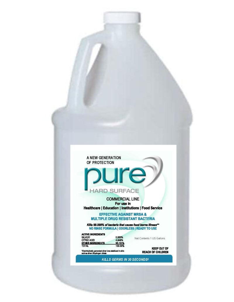 PURE Hard Surface rapidly eliminates bacteria, viruses and fungi, including multiple drug resistant organisms (CRE, MRSA, VRE), Human Coronavirus, Norovirus, Hepatitis B and C, Listeria, E. coli and Salmonella with kill times as fast as 30 seconds.