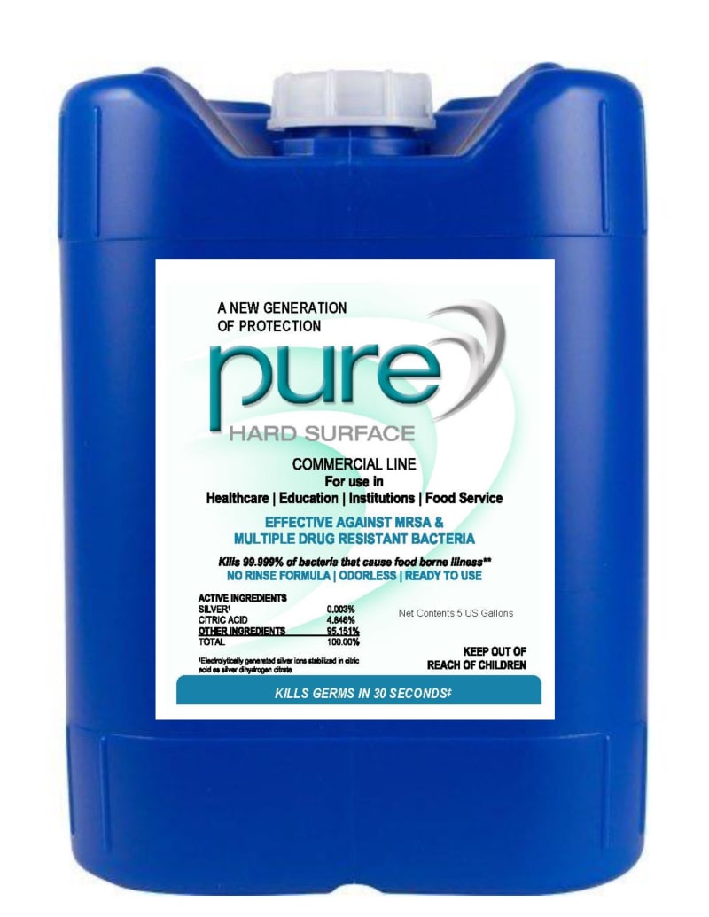 PURE Hard Surface rapidly eliminates bacteria, viruses and fungi, including multiple drug resistant organisms (CRE, MRSA, VRE), Human Coronavirus, Norovirus, Hepatitis B and C, Listeria, E. coli and Salmonella with kill times as fast as 30 seconds.